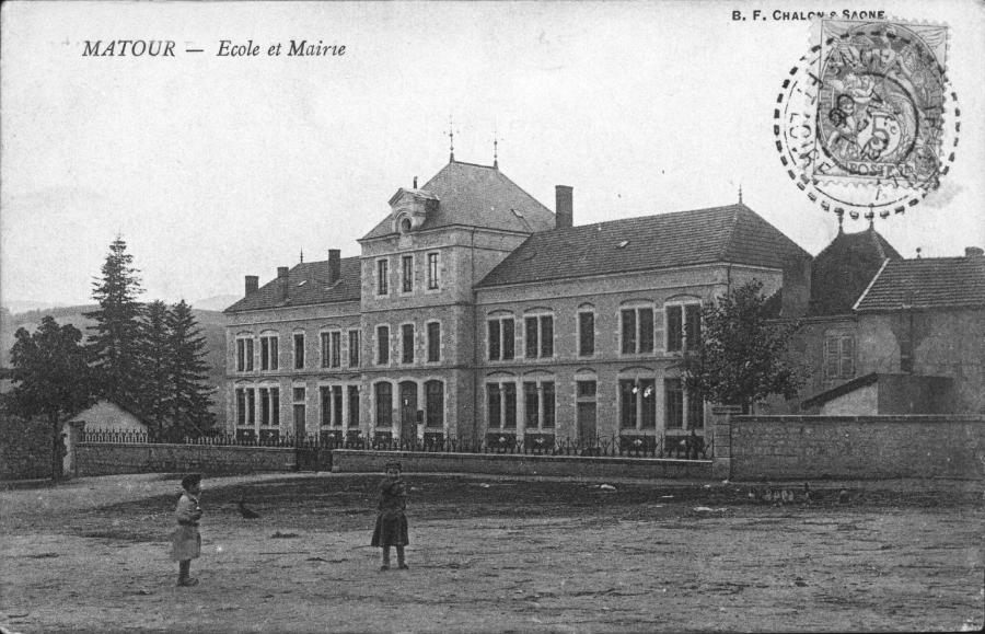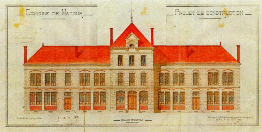Pareillement, M. le Préfet a refusé la délibération de la commune demandant à ériger en école de filles communale l’école libre dirigée à Matour par le Religieuses du St Sacrement ... Autre projet suscité par la Préfecture de louer des bâtiments des bâtiments à des particuliers pour les destiner à une école, projet refusé par la commune, maintenant son projet de construction. D’autre lieux avaient été repérés pour une construction, au nord de la commune et au sud de la nouvelle église, sans pouvoir aboutir pour différentes raisons, terrain trop humide, exposition au nord, démolitions nécessaires avec expropriation ...